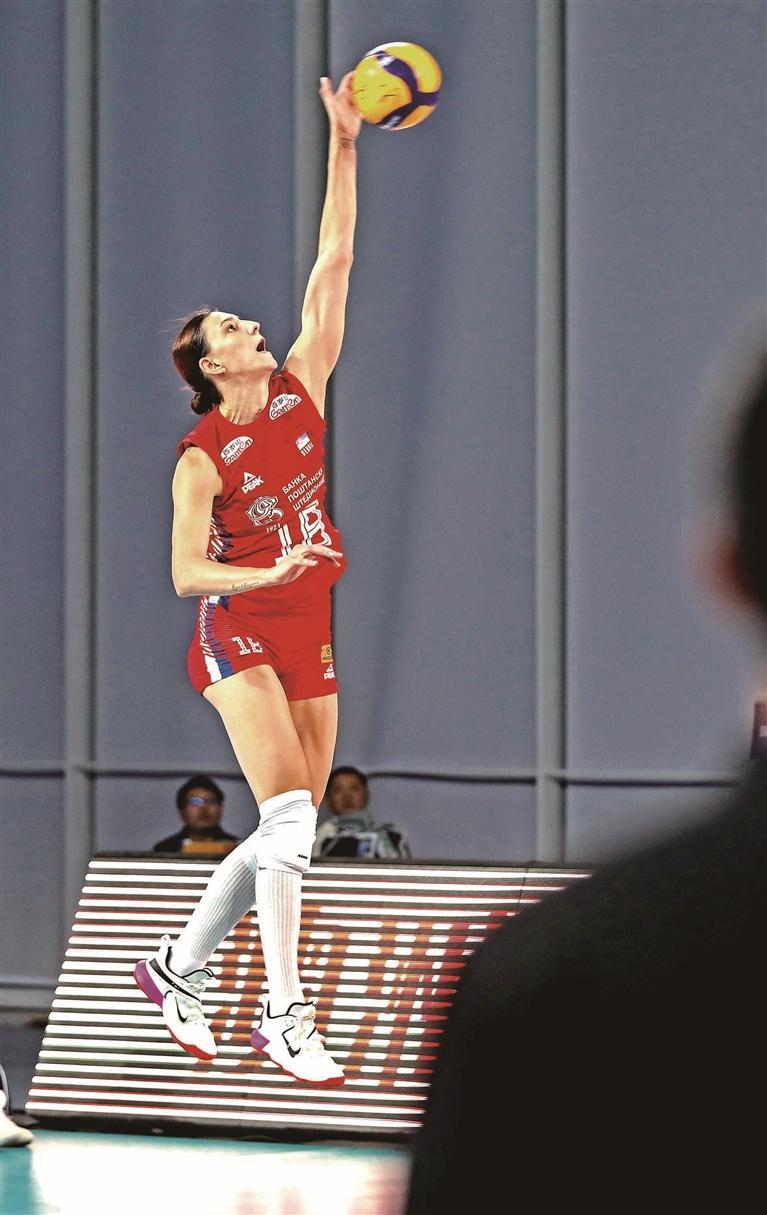 塞尔维亚女排与深圳中塞龙华女排展开激烈对决。