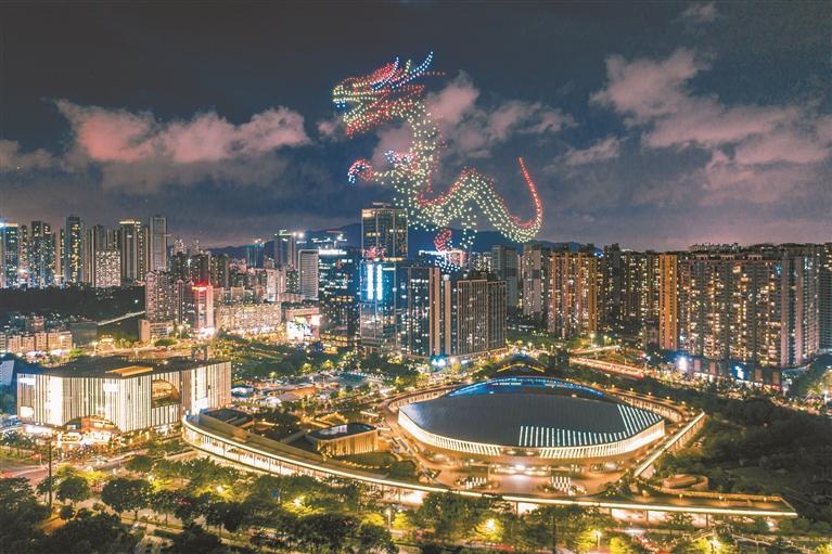 今年6月,在深圳市龙舟文化艺术节上,千余架无人机化为“巨龙”腾空飞舞,以一幕“飞龙在天”展示新文旅的无限魅力。