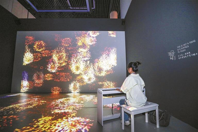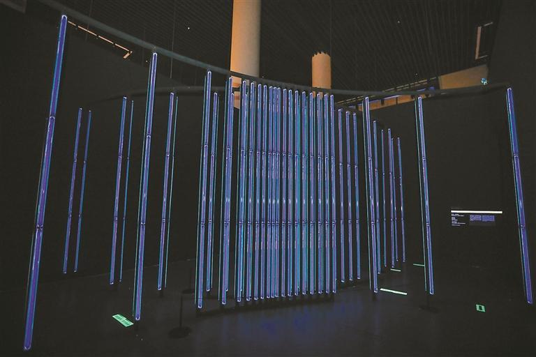 “互生景观——科技艺术展法国奥普莱奖深圳首展”位于新馆一楼最显眼的展厅里。科技和艺术的融合创新,是深圳美术馆(新馆)开馆八大展览中最具亮点的一个展。科学技术的发展,也为艺术带来了新的机遇。中国美术家协会主席、开馆展总策划人范迪安认为,科技可以丰富艺术的表现形式,帮助大众更深入地理解艺术世界。