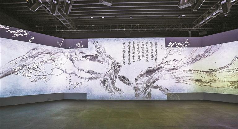 “好梦无由——北京画院藏齐白石精品展”中,“一花一世界”利用360度沉浸式数字光影剧场,让人如入画境。