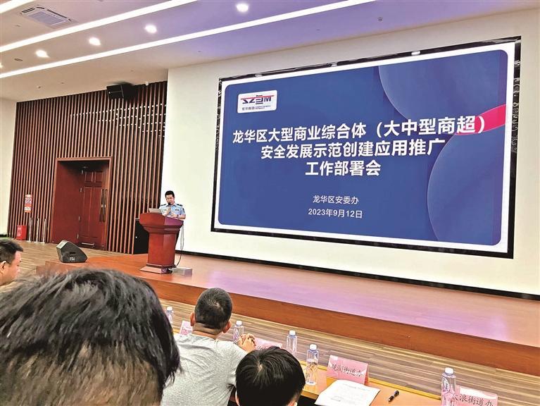 9月12日上午,区大型商业综合体(大中型商超)安全发展示范创建成果应用推广工作部署会在龙华区安全教育基地召开。区安委办、区商务局、龙华区消防救援大队、市市场监督管理局龙华监管局、各街道有关负责人和辖区71家综合体、商超企业主要负责人与安全管理负责人参加了会议。会议通报了龙华区大型商业综合体(大中型商超)安全发展示范创建工作背景、成果成效,并动员部署全面推广应用的任务分工、协调机制和考核要求。