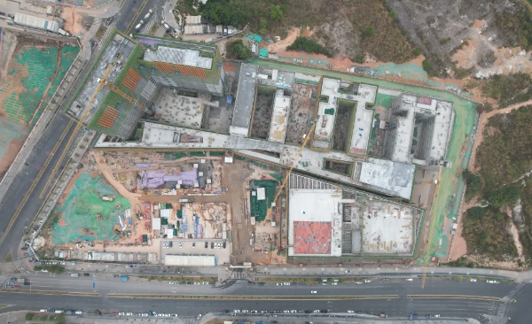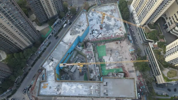 目前高一组团正大面积开展室内精装修,高二、高三组团已全面插入砌体工程,多作业面同步推进、多工序有序衔接。面对各类施工挑战,项目团队多措并举,以智造支撑全流程追踪,采用高空悬挑模架体系、盘扣架高强度双托梁支撑体系。