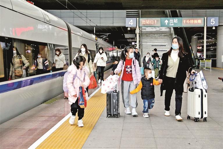 旅客在深圳北站站台乘车。