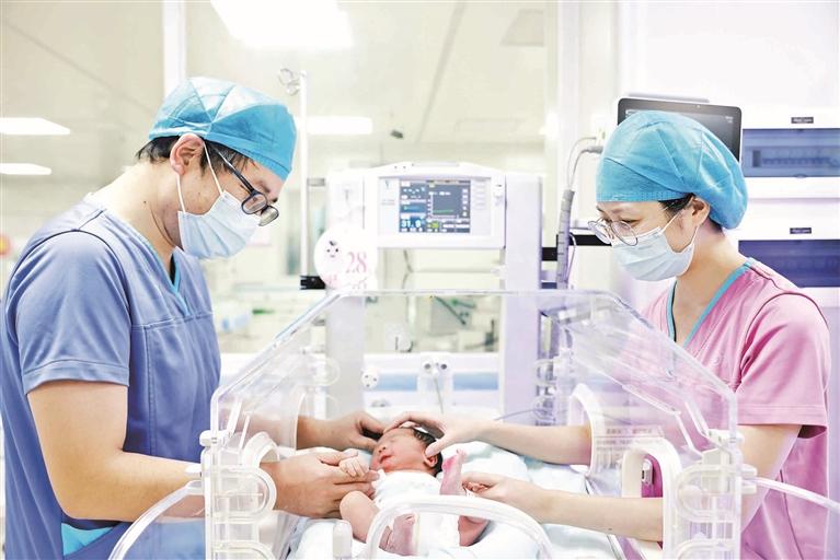 ▲区妇幼保健院新生儿科医护人员为新生儿护理。