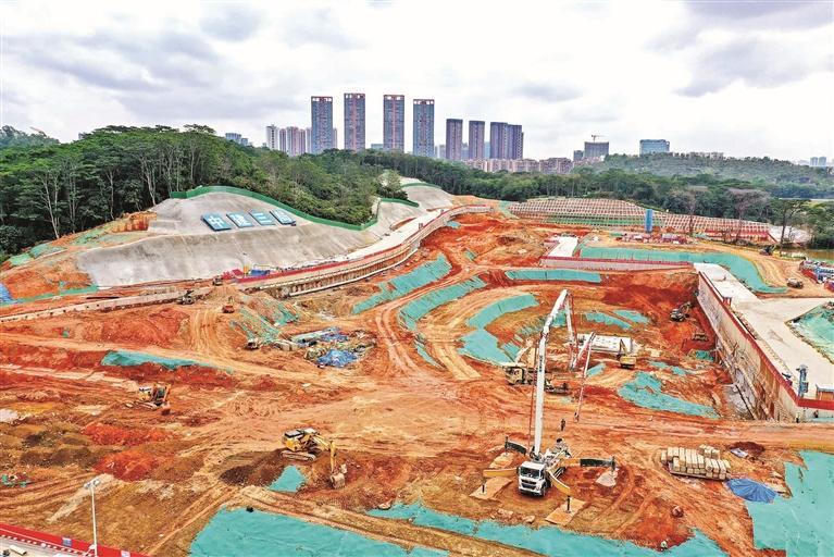 大浪体育中心施工现场呈现出一派繁忙景象。