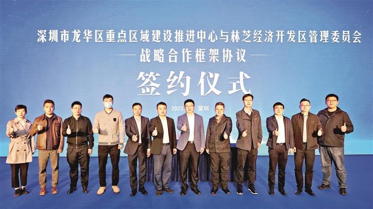 2月16日上午,深圳市龙华区重点区域建设推进中心与林芝经济开发区管理委员会战略合作框架协议签约仪式在龙华城市客厅举行。