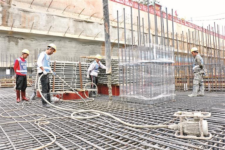 ▲龙华“三馆”首块底板顺利浇筑。