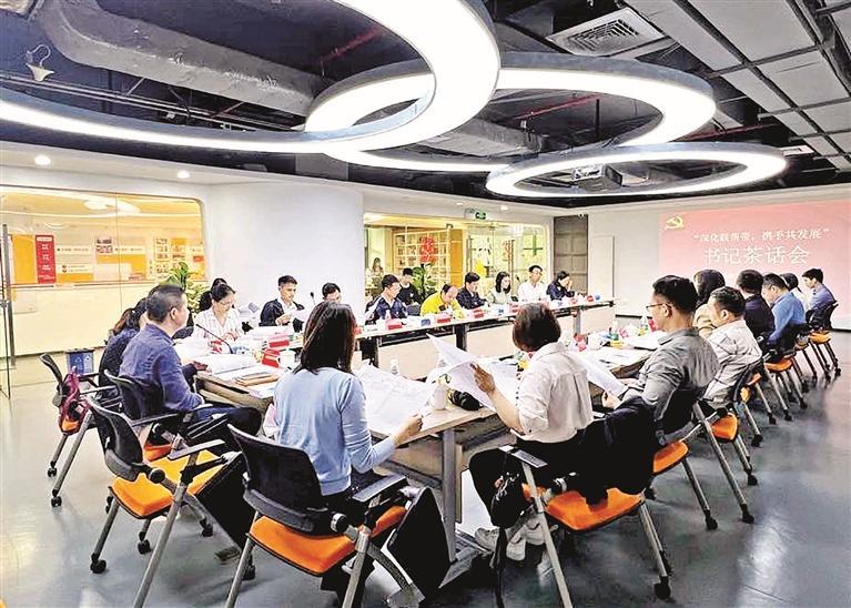 大浪街道“两新”组织党工委在大浪时尚小镇党群服务中心举办专场书记茶话会暨“联帮带”支部企业供需交流会。
