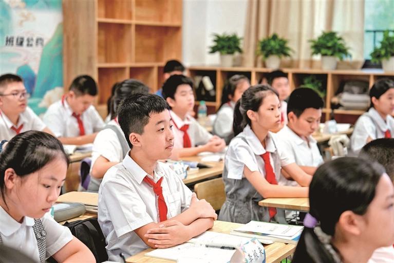 龙华区外国语学校教育集团高新校区的学生在教室里上课。