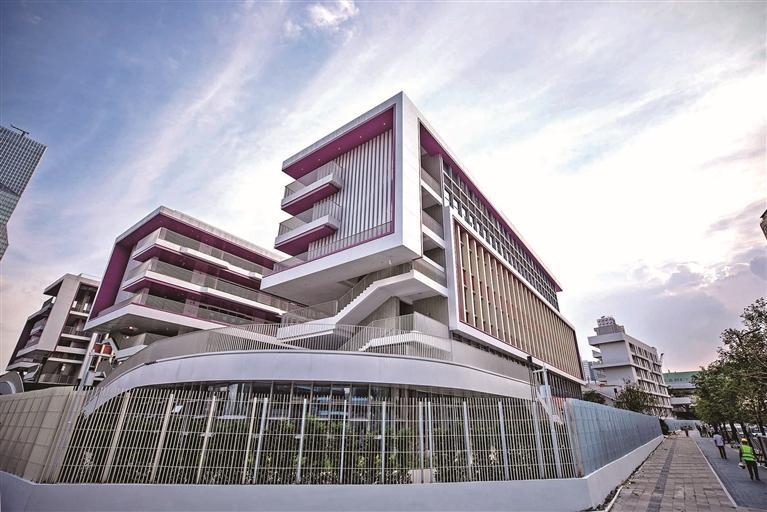 王卫一行随后来到龙华区外国语学校教育集团高新校区。龙华区外国语学校教育集团高新校区位于观湖街道观盛四路与长兴路交会处西南侧,占地面积12233平方米,总建筑面积38292平方米,于2023年9月正式启用。该学校按龙华区外国语学校教育集团的理念和标准,以课程育人体系的精准设计、教师人才梯队的科学组合、质量管理系统的智能升级、高新科技园等社会资源的整合,实现差异化布局、特色化孵化、集群式生长,促进区域义务教育均衡高质量发展。
