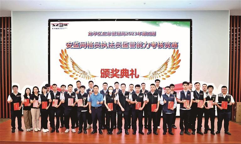 竞赛结束后,龙华区应急管理局有关负责人向参赛单位颁发获奖证书。他表示,希望大家结合监管职责,坚持常态化学习,提高业务能力,成为安全监管的巡查能手和执法办案能手。接下来要坚持执法监管工作不松懈,做好“三个力度”。一是吸取事故教训加大执法力度。执法是目前有效防范事故的主要手段,各街道要对主业领域加大执法检查力度,消除事故隐患,压降事故。二是加大重大隐患整治力度。要以重大隐患整治为契机摸清自己辖区的“家底”,组织排查力量,发现一处闭环一处,依法依规查处。三是加强推进工业园区规范化建设力度。前期在园区规范建设上所作的努力效果明显,但大家要紧盯进度,对照标准全力推进,争取今年提前完成任务。