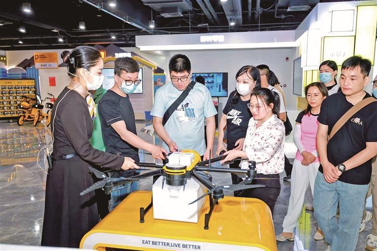 ▲市民在美团大数据运营中心参观美团无人机设备。