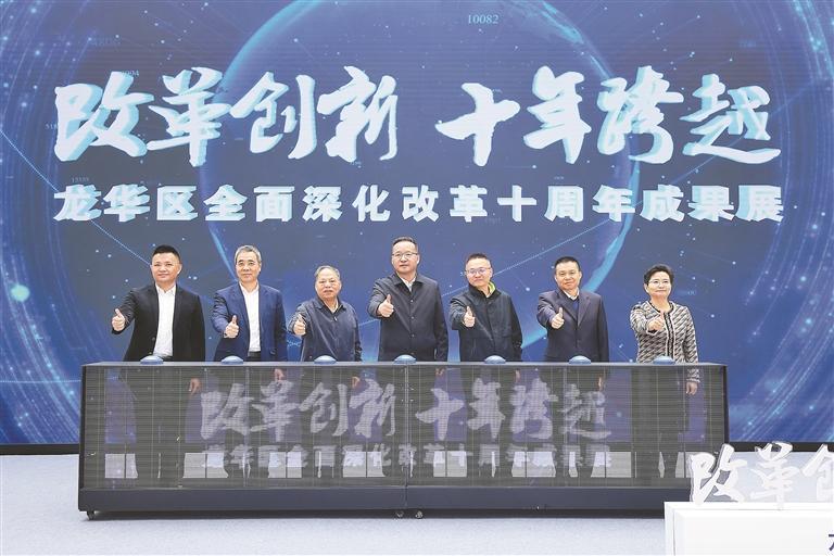 12月19日上午,“改革创新 十年跨越”龙华区全面深化改革10周年展览开幕式在区委大楼举行。