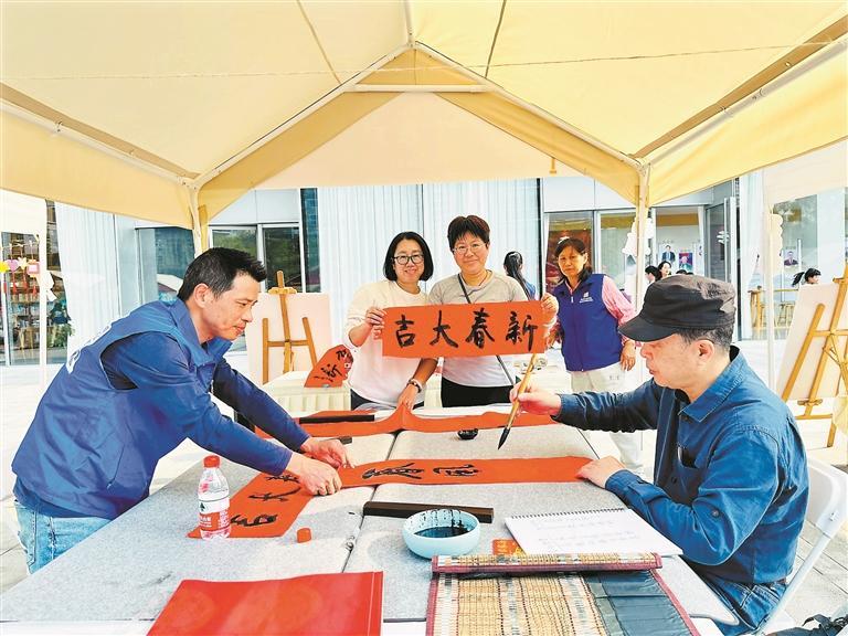 摊位内容丰富多彩,涵盖写春联、非遗剪纸、非遗舞龙折纸、猜灯谜、中医文化体验、旧物漂流、文明互动等内容,通过活动让市民感受关爱与文化艺术的魅力,在文明集市中发现龙华的发展变化,感受龙华文明之美。