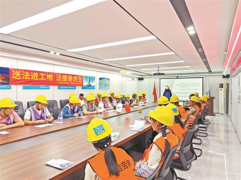 据介绍,自2023年以来,龙华区司法局联合龙华区住房和建设局、深圳市公安局龙华分局,常态化在全区范围内开展“送法进工地”专项活动,每月不少于两场,实现全区六个街道全覆盖、不同项目工地均普及。目前已开展系列活动28场,累计受益务工人员2000余名。活动中,龙华区司法局专门组建法律援助律师库,遴选专业、热心公益律师组成普法团队,在工人们晚间空闲时走进工地,聚焦工人群体的实际需求,提供普法讲座、法律咨询、法治问答游戏等多种多样的法律服务。