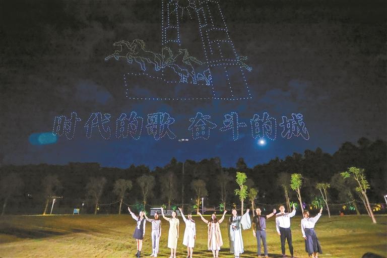 无人机表演照亮夜空。