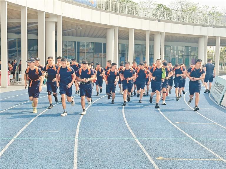 区森林防灭火大队队员负重10公斤跑5公里。
