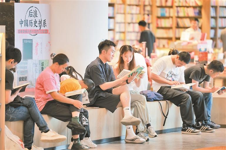 ▲在深圳书城龙华城,不少读者徜徉于书海中,阅读氛围浓厚。