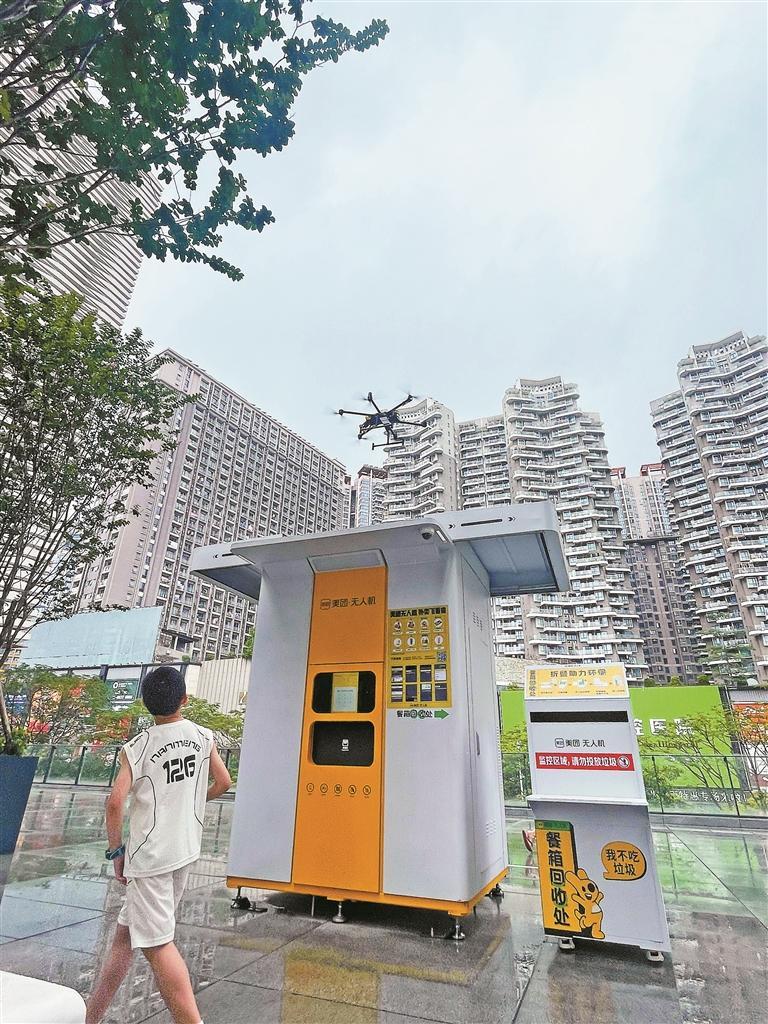 深圳图书馆北馆开业后备受市民喜爱,日常接待量均有数千人,周末到馆人数更高达过万人。由于管理要求所限,区域内不便开设大量餐饮商家,所以市民大多需要步行一公里左右前往附近商圈解决就餐问题,往返路程至少约20分钟。美团无人机航线开通后,市民不到半小时就能吃到热乎的餐食。正在图书馆北馆无人机降落点新设的就餐区用餐的市民李雄,是深图北馆无人机配送的首批体验者之一,“看书时抽空下单点个外卖,大概只用了10多分钟就收到了外卖送达的消息,取了餐食就可以在用餐区享用,简直太方便了!”他兴奋地说:“体验感很好,不但餐饮选择多,而且再也不用风吹日晒地专门去附近找饭吃了!”