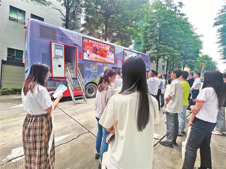 移动宣传车向居民普及电动自行车驾驶安全知识。