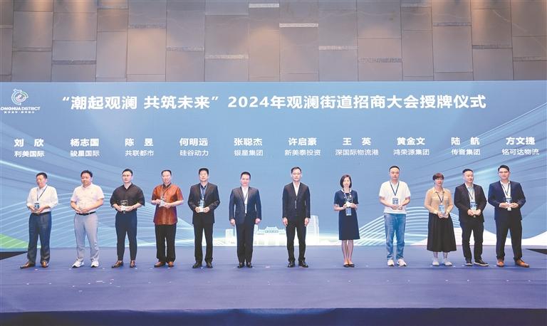 “潮起观澜 共筑未来”2024年观澜街道招商大会“观澜招商大使”授牌仪式现场。