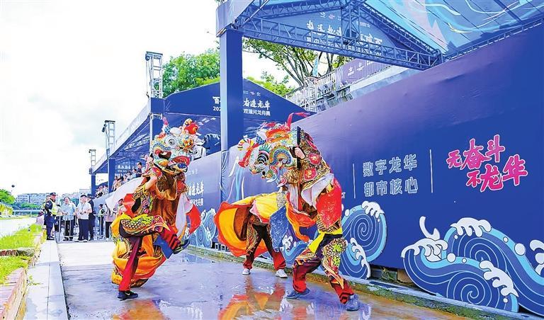 比赛现场还穿插了精彩的文化展演,《金鼓齐鸣》《一叶扁舟》《神兽献瑞》《余音绕梁》《水中蛟龙》等暖场活动一一上演,极大提升了市民、游客的体验感。