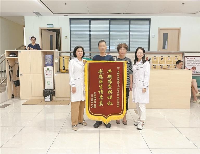 “早期筛查铸福祉,感恩医生情意真!”刚过去的6月,家住民治大岭社区69岁的齐辉老人将一面锦旗送到了大岭社康中心(水榭春天社康中心)致谢,“如果没有这次免费筛查,我还不知道自己有肿瘤风险方面的健康问题,感谢社区医生和护士们,是你们的专业让我重获健康!”