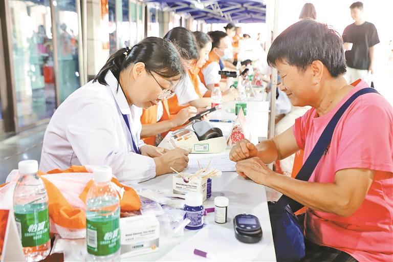 “健康护航”爱心义诊活动,整合医疗资源,提供中医问诊、测量血压、青少年口腔健康检测等爱心义诊服务,向居民发放健康手册,以知识讲解与问诊相结合的方式,丰富居民卫生健康知识。