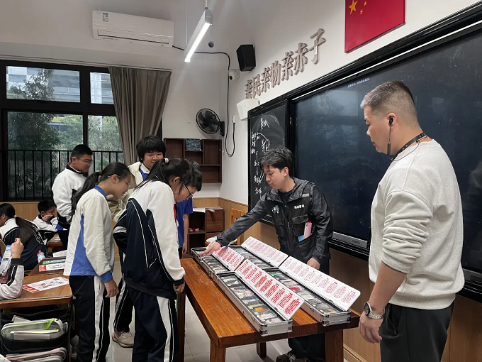 讲座结束后,学生们被现场的毒品仿真模型展示区深深吸引。工作人员借助数十种高仿真模型,直观展示了毒品的外观特征及其迷惑性,让学生们有了最直接的认识。“这个看起来就像普通的邮票,危害竟然这么大!”一名学生在观察后惊讶地说道。这种近距离的观察与讲解,极大地增强了宣传教育的效果。