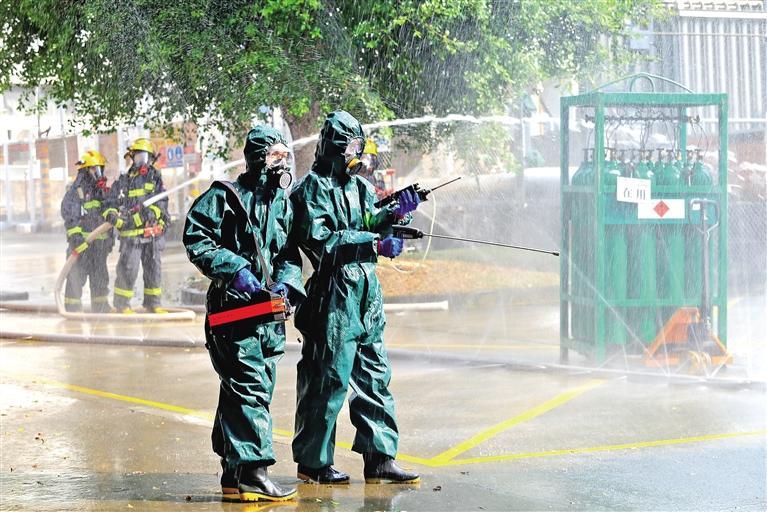 龙华区2023年危险化学品事故应急救援演练在深超光电(深圳)有限公司举行。