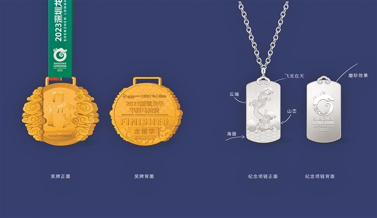 2023深圳龙华半程马拉松活动奖牌及纪念项链示意图。