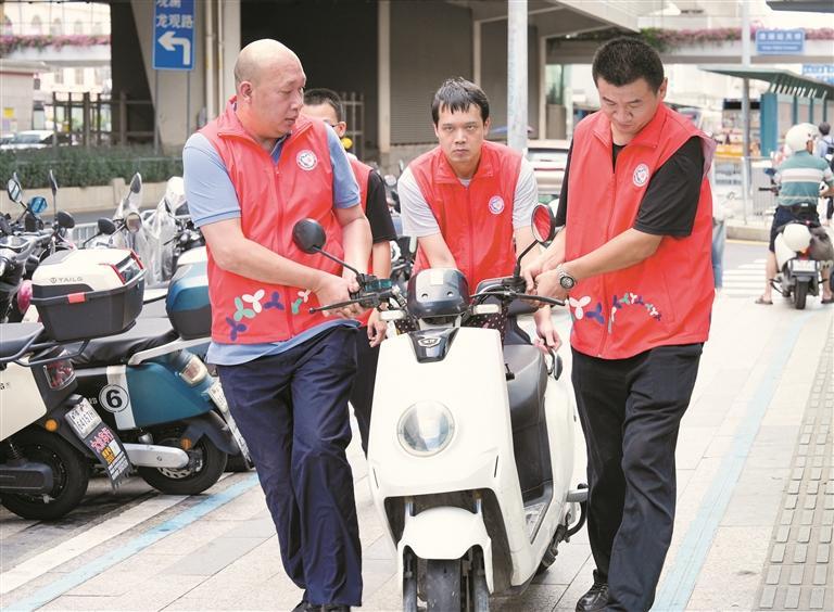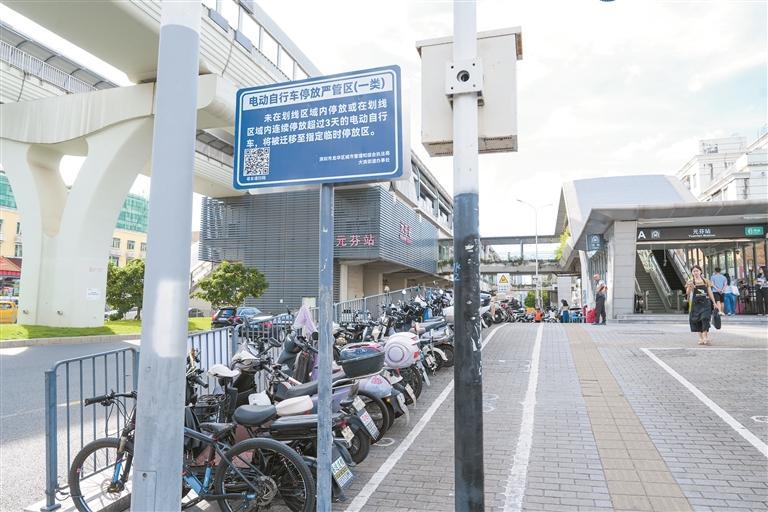 具体来说,一类严管区主要是重要的交通枢纽,尤其是地铁口等乱停放问题最突出的“痛点区域”。目前,龙华区在龙华站、清湖站等8个重点地铁口周边,率先开展了一类严管区试点;此类严管区内,未停在划线区内,或者在划线区内连续停放超过3天的电动自行车,将被迁移到指定的临时停放区,确保地铁口周边畅通。