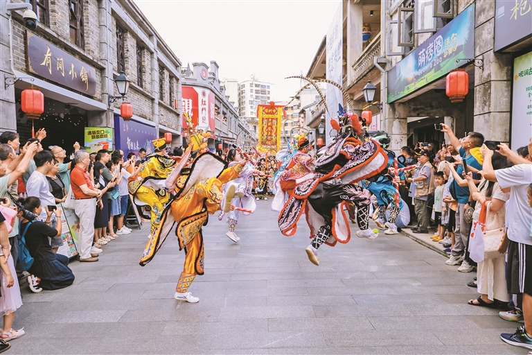 与传统“台上表演、台下观看”的模式不同,本次活动特别注重互动与体验,让市民游客从“旁观者”变为“参与者”,许多游客和小朋友受热烈气氛感染,跟随节奏摆动身姿加入巡游队伍,亲身感受英歌舞传递的活力与激情。