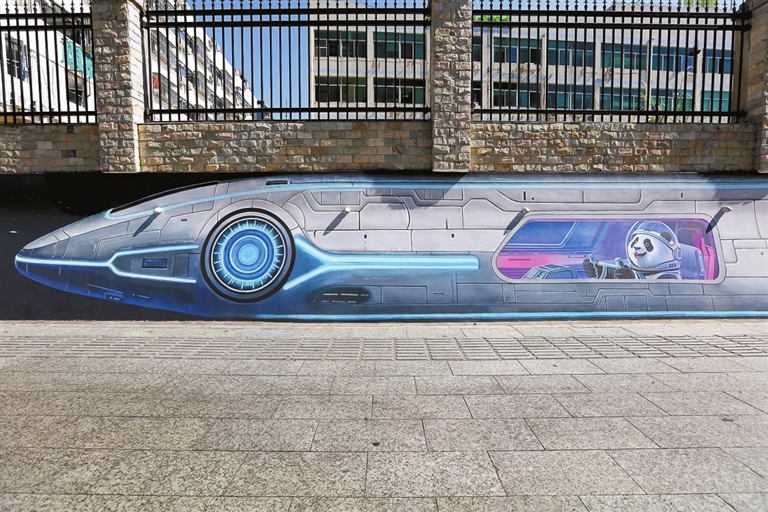 墙绘作品《萌趣互动 童真创想》一角。