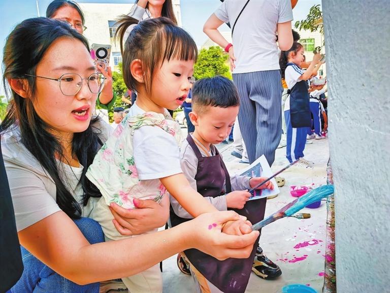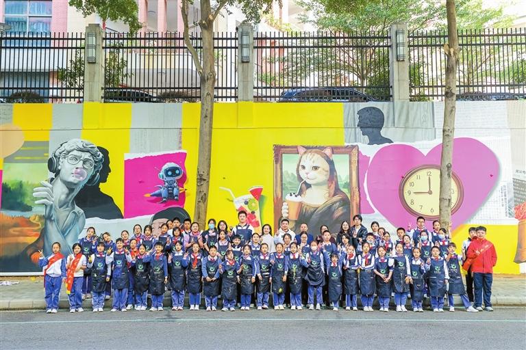 ▲龙华区博文学校师生创作的《童趣乡野·茜坑印象》主题墙绘。