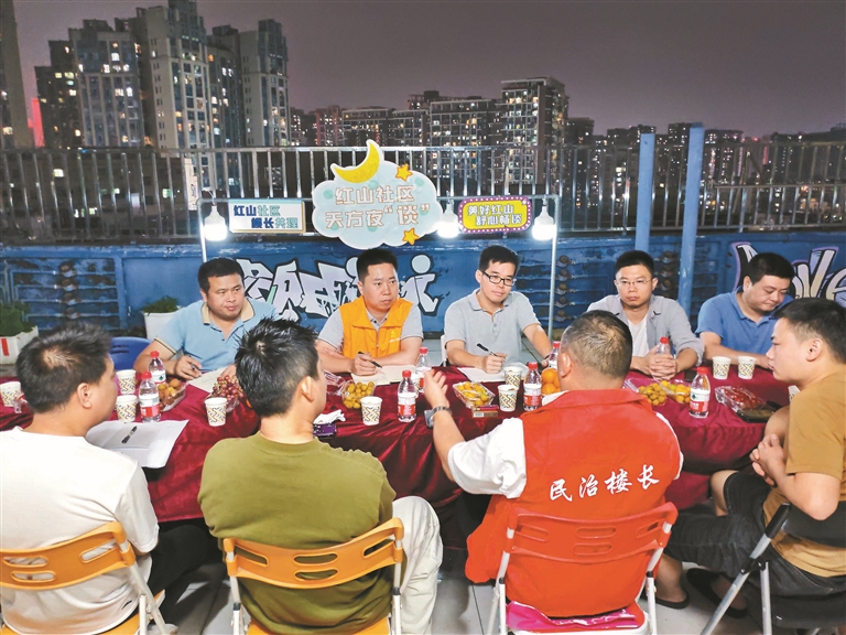 为给多元共理提供坚实支撑,社区在议事协商层面持续发力。13场“天方夜谈”书记茶话会在城中村楼栋天台开讲,党支部、物业、居民围坐共议,推动垃圾桶点优化等15项民生实事落地;“亲邻商圈服务站”的设立,更引导商户自主协商化解纠纷数十起,实现“矛盾不出商圈、问题就地解决”,为“红山共理”筑牢实践保障。