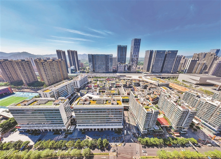 地处龙华中轴数字产业核心区的红山社区,2.26平方公里的土地上承载着5.1万服务人口,日均10万人次的人流往来穿梭,勾勒出都市核心区的活力图景。目前,社区已初步形成了“一大枢纽、双轨贯通、三圈融合、四类人居、五馆聚心”的发展格局:坐拥红山-深圳北站的交通大枢纽;享有培侨书院深港双轨的教育优势;实现了交通、商业、文化三大圈层的深度融合;构建了高端商品房、人才安居房、国际公寓、城中村四类融合的多元人居形态;并汇聚了美术馆、图书馆等五大市区级文化场馆,同时配套了以新华医院为龙头的完善医疗体系。
