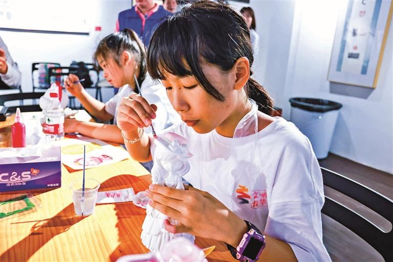 ▲青少年参与陶瓷DIY彩绘。