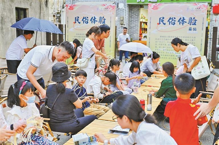 活动现场,不少市民也带上家人,来古墟邂逅一场指尖上的非遗民俗体验。非遗藤编、客家饼食制作、版画印刷体验,民俗体验环节设置三个场次、三种体验,到场市民游客凭兴趣选择民俗体验活动,由非遗手工艺者带领市民沉浸式体验传统文化工艺,感受非遗手作的魅力。