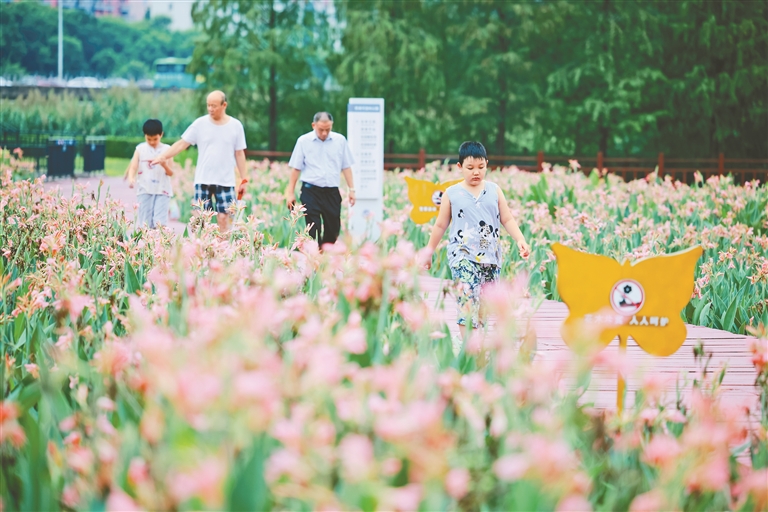 观澜河湿地公园利用生态方式将污水处理设施建设成公园,实现了土地利用、生态保护、休闲景观的综合效益。公园中设有中央贮水池“生命之泉”、植物池等观赏点,经人工湿地处理过后的水清澈见底,自然汇集在“生命之泉”中,可作为市政回用水;植物池种植了水生美人蕉、大叶再力花等净水植物,夏季时朵朵娇艳、花开成海;同时,园内设有湿地科普教育展厅,栈道沿线设有各类具有教育性、知识性的标识牌,方便游客了解污水净化工艺流程、植物种类及其净化功能。该公园通过让市民直观感受污水经过生态湿地渗透处理由浊变清的过程,宣传水对于生命的重要意义,引导市民增强环保意识。