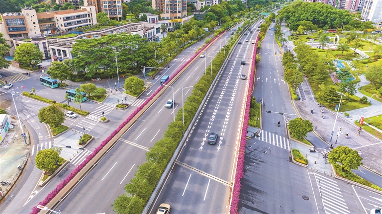 龙澜大道辅路跨线桥紫花簕杜鹃盛放,让行车体验宛如穿行花廊。
