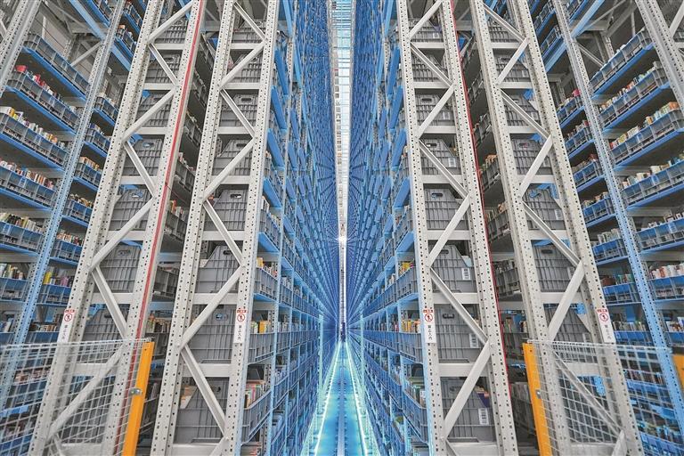 深圳图书馆北馆地下智能立体书库引入机器人配送系统,实现“十分钟精准送书”。