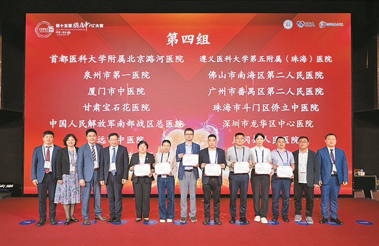 在第十五届中国胸痛中心大会(CCPCC15)现场,龙华区医院代表(右四)上台领奖。