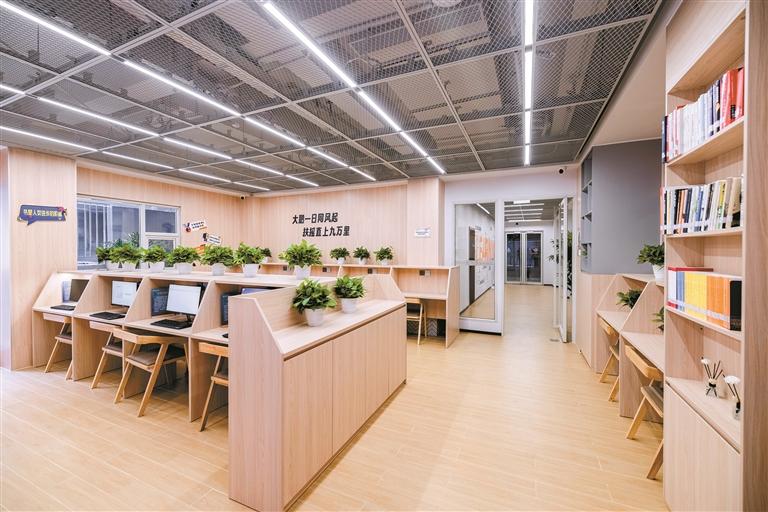 安居驿站房间是宽敞的双人间,配备家用电器,洗衣机、热水器应有尽有,同时内设Wi-Fi、空调、淋浴、床单被套等,拎包即可入住。安居驿站内还设置了青年学习驿站,配备齐全的学习用品,提供丰富的书籍资料。不管是休闲阅读,还是自我学习提升,都能奔赴更优秀的自己。驿站内还有健身房、桌球室等,专业器械整齐排列,随时满足不同锻炼需求。