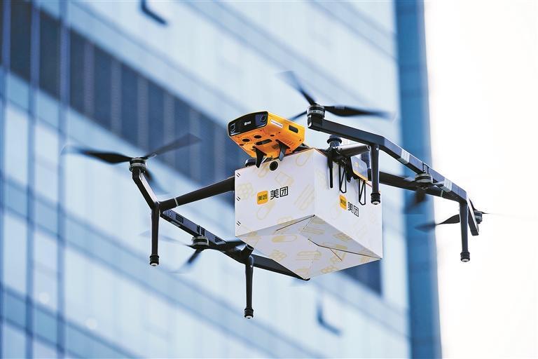 美团无人机在北站辖区进行配送。