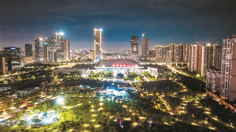 北站中心公园以光为笔、以夜为幕,绘就绚丽画卷。