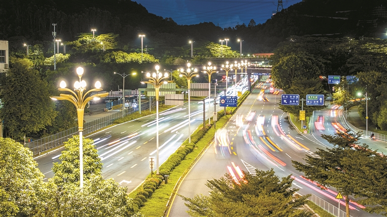 在城市景观提升工作中,龙华区秉持庄重典雅理念,高标准开展梅林关灯光提升,注重照明功能与视觉美感的统一,8杆融入传统中式元素的景观路灯惊艳亮相,有效提升“中轴”夜间风貌的品味与辨识度。