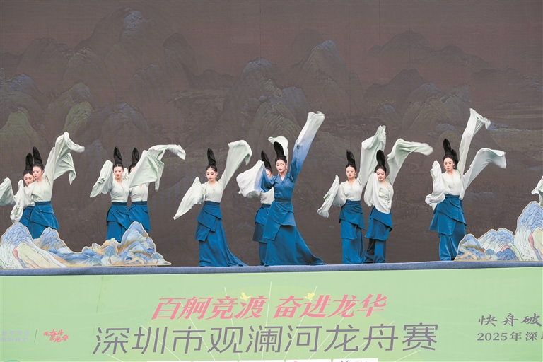 《只此青绿》原班人马在观澜河龙舟赛现场进行表演。