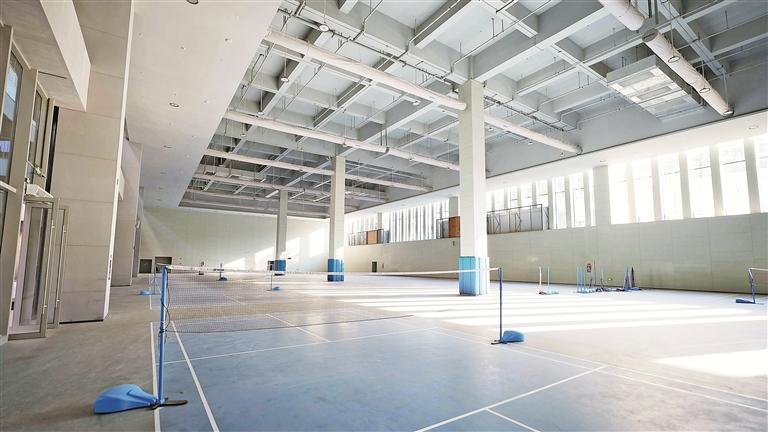 首层堪称“运动活力核心区”,这里设有2171个座位的多功能馆,可灵活承办各类中小型体育赛事与文艺活动;还有1个室内标准游泳馆、1个室外训练池与1个儿童泳池构成完善的水上运动矩阵,满足不同年龄段市民的游泳需求;1个包含21片球场的室内羽毛球馆则成为此项运动爱好者的热门选择。值得一提的是,这里还有一座约1000平方米的真冰场,可为周边居民带来独特的运动体验。在主场馆的另一边,还有专门为滑板爱好者打造的滑行区域。