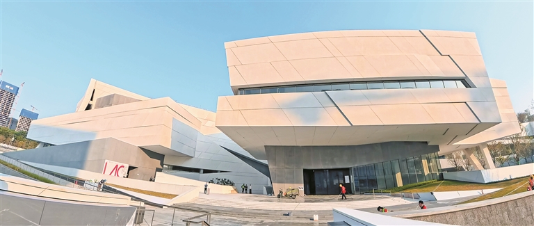 总建筑面积达18.4万平方米的鹭湖艺术中心,以“湖山共影”为核心设计理念,由北向南依次铺陈大剧院、群艺馆、图书馆三大主体建筑,形成错落有致、和谐共生的复合建筑形态。